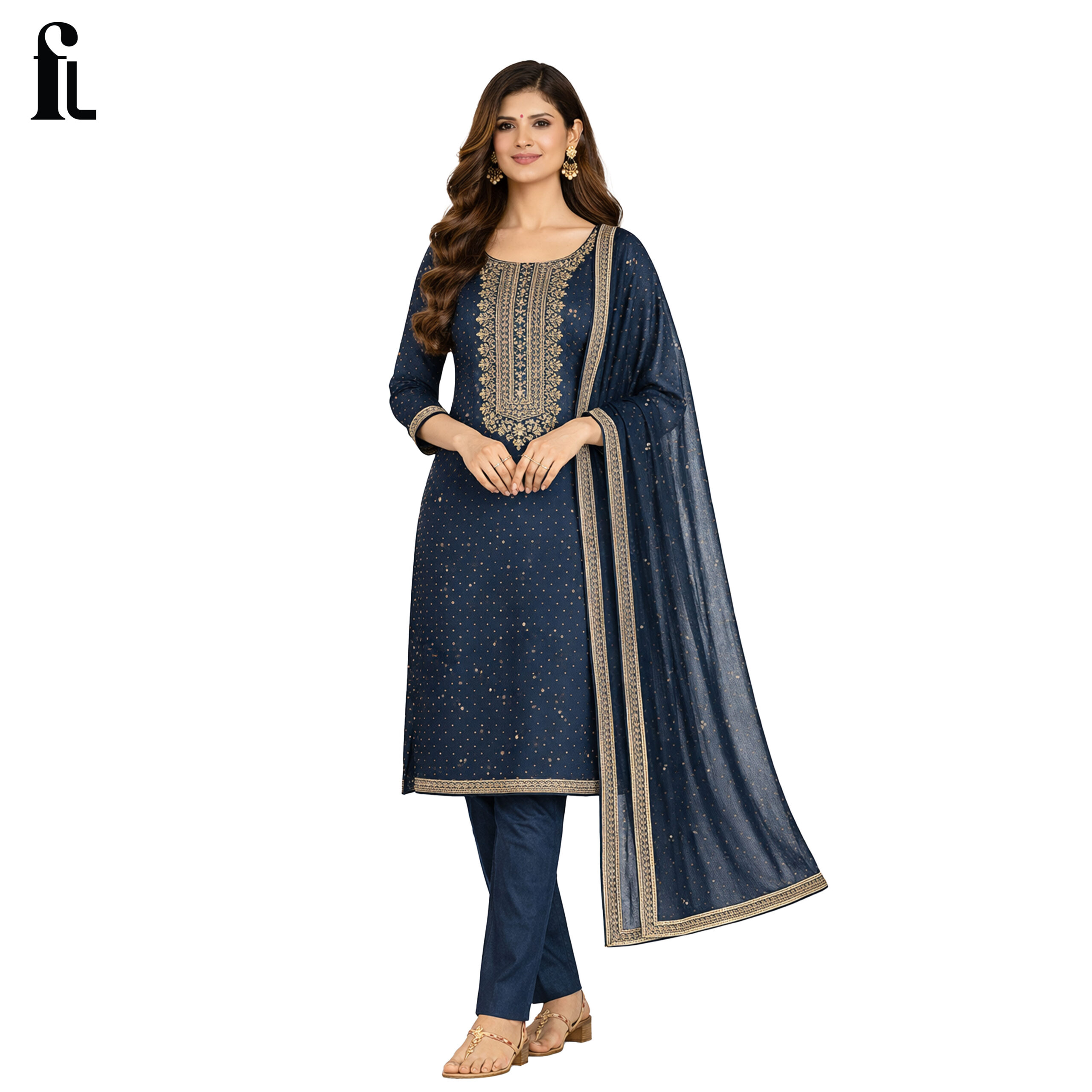 Step into timeless elegance with this Fabloom Navy Blue Embroidered Suit Set, designed for women who love a rich and graceful ethnic look.