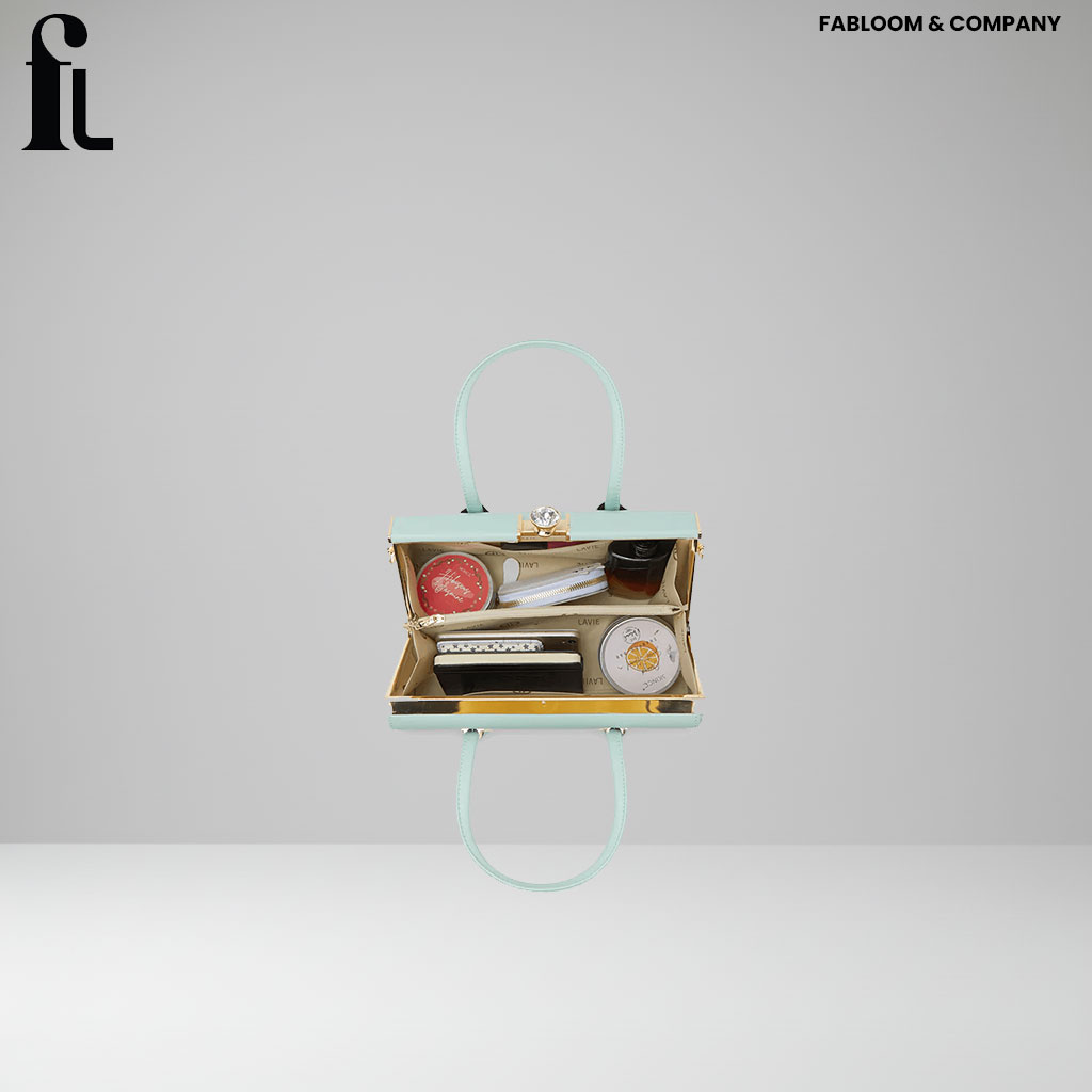 The Dazzle bag offers a spacious inner compartment, letting you keep essentials like wallet, phone, keys, and makeup neatly organized. Its sturdy structure, paired with a smooth plain finish and an embellished diamond-stud frame closure, creates a statement piece that is both trendy and timeless.