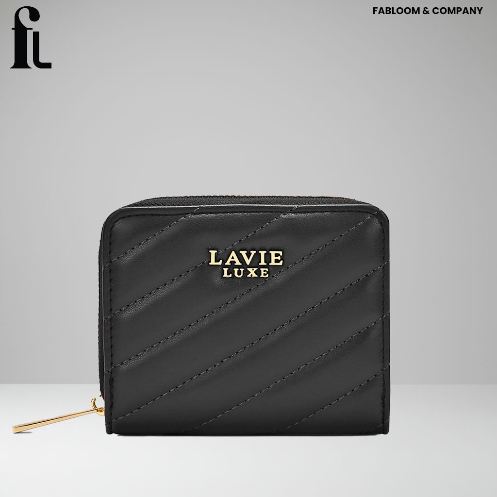 The interior offers thoughtful organization, with a secure metal zip closure dedicated to coins, while a convenient press-button flap opens to reveal spacious compartments for cash and multiple card slots. The wallet is further elevated by the luxurious gold-shimmer Lavie Luxe metal logo and iconic Double L fitting, adding a sophisticated statement to your essentials.