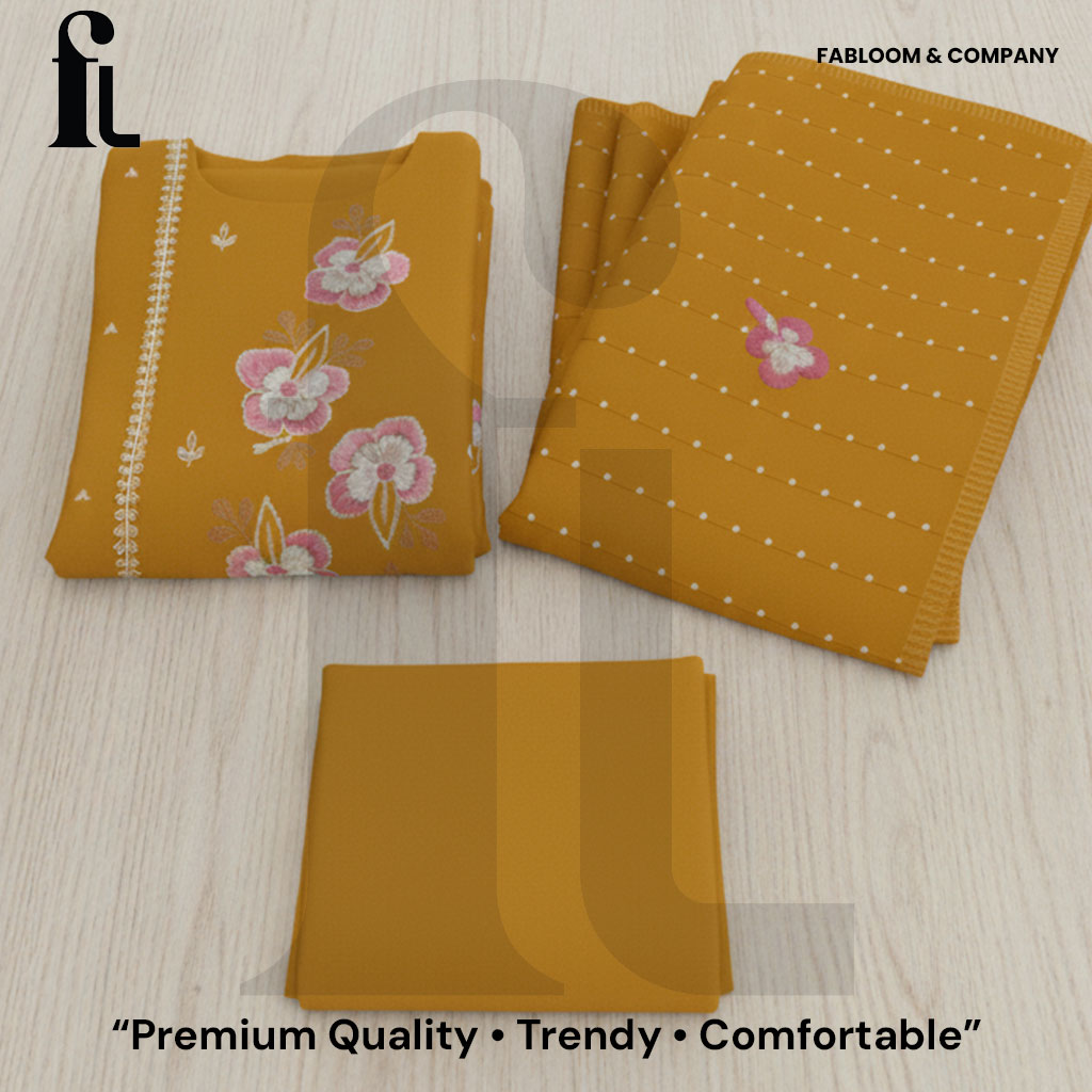 Refresh your ethnic collection with the Mustard Yellow Blossom Pure Cotton Unstitched Suit. Crafted from premium, breathable cotton, this ensemble features an elegant maroon base decorated with delicate pink and beige floral embroidery and beautifully finished borders. Its lightweight and soft texture promises maximum comfort, making this suit ideal for long summer days, festive gatherings, office wear, or casual outings. The unstitched design gives you the freedom to personalize the fit and style, ensuring both versatility and a custom silhouette. Durable and colorfast, this suit is a must-have for anyone looking for both charm and comfort in ethnic wear.​