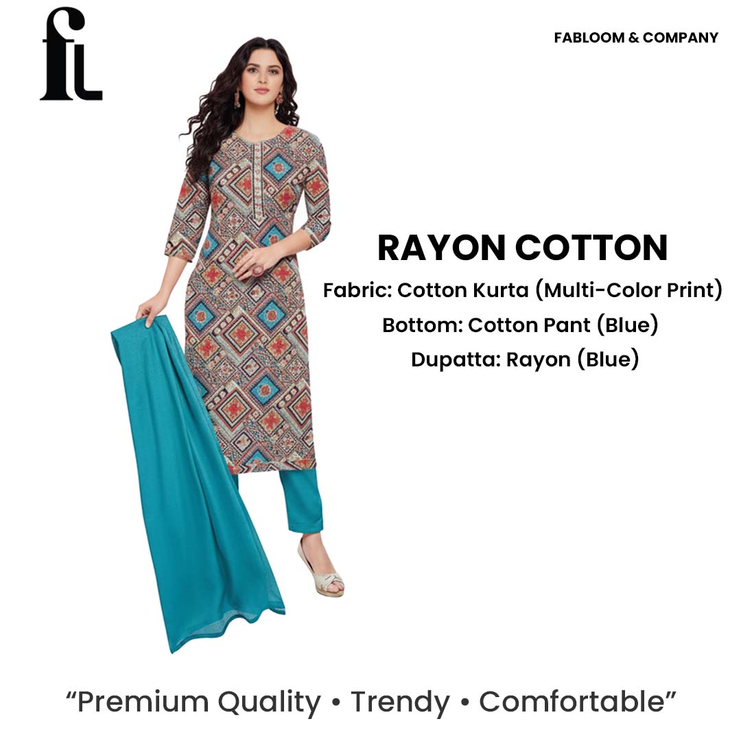 Fabric: Rayon Cotton, known for its lightweight, breathable, and moisture-absorbent properties.